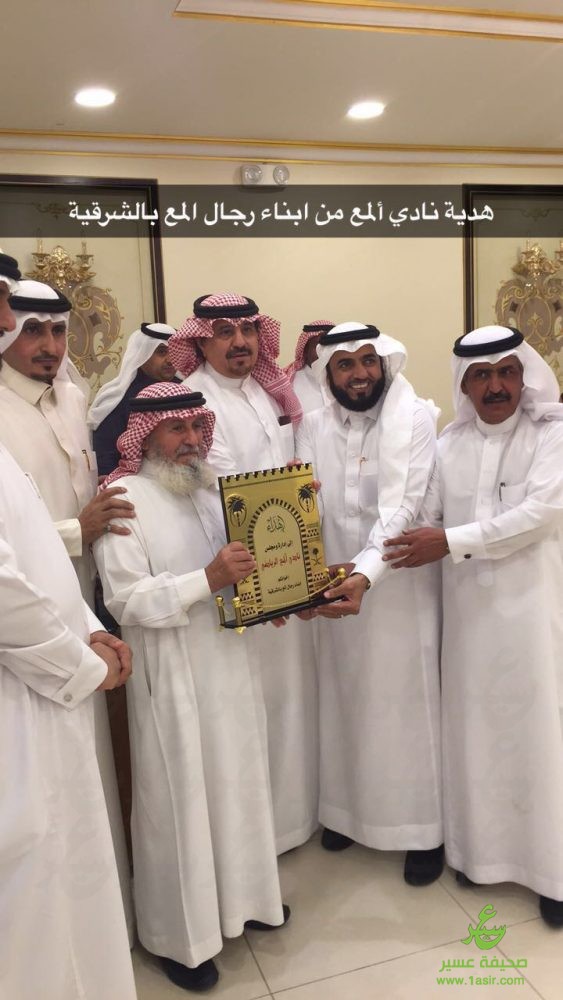 احتفل أبناء رجال ألمع بالمنطقة الشرقية بنادي ألمع الرياضي الذي وصل للشرقية لمباراة الإياب مع نادي الترجي بالقطيف وقد أقيمت مأدبة عشاء للنادي على شرف رجل الأعمال الشيخ حسين بن فايع النعمي بداء الحفل بكلمة ترحيبية لأبناء رجال ألمع بالشرقية قدمها الاستاذ والإعلامي عبدالله ال الزهر الألمعي رحب فيها بادارة و أعضاء ولاعبي نادي ألمع وهنأهم ببطولة منطقة عسير لدرجة الأولمبي ثم ألقى رئيس النادي كلمة شكر فيها الجميع وخص بالشكر رجل الاعمال الشيخ حسين النعمي وأبناء رجال ألمع عامة على حفاوة التكريم .