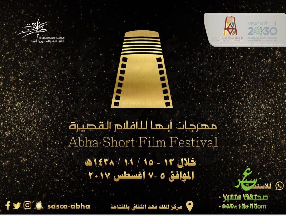 بمشاركة تسعة أفلام قصيرة وثائقية وروائية ينطلق مساء السبت القادم في مركز الملك فهد الثقافي في أبها مهرجان أبها للأفلام القصيرة والذي يأتي ضمن نشاطات جمعية الثقافة والفنون في أبها بمناسبة إحتفال أبها عاصمة السياحة العربية لهذا العام ٢٠١٧.