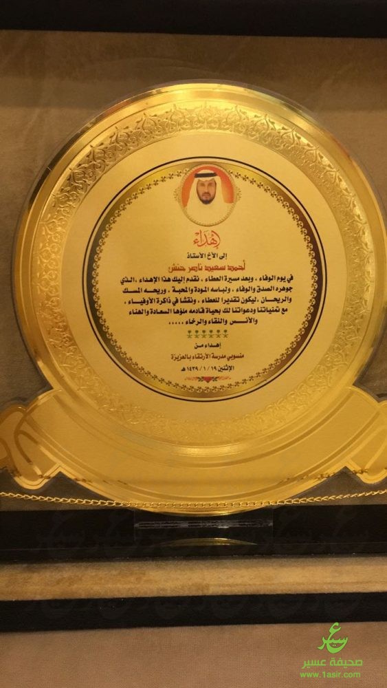 أقام قائد ومنسوبو مدرسة الإرتقاء الإبتدائية بالعزيزة مساء هذا اليوم حفل تكريم وتوديع للمعلم أ/ أحمد سعيد حنش والذي أمضى ستة وثلاثون عاما قضاها معلما بعدة مدارس بالمنطقة كان أنموذجآ يحتذى به في الإخلاص والتفاني في العمل تخلل التكريم حفل خطابي بدئ بالقرآن الكريم ثم كلمة ترحيبية القاها قائد المدرسة الأستاذ/ناصر آل معيض رحب فيها بالضيف والحضورتلاها القى الشاعر أ/ فايز العمري قصيدة نالت استحسان الجميع ثم القى المكرم كلمة شكر فيها منسوبي المدرسة على الحفاوة التي أولوه إياها وذكر بأن المدرسة لازالت وستزال يضرب بها المثل في التعاون والوفاء وأداء الرسالة وتخلل الكلمة مشاركات شعرية نالت استحسان الجميع ثم قدمت الهدايا والدروع للمحتفى به ثم تناول الجميع طعام العشاء المعد بهذه المناسبة بقاعة “الشرقي” للمناسبات حضر الحفل نائب الجماعة أ/عبدالله الضبعان والاستاذ/علي بن حنشوالاستاذ/ عايض بن درع الذي شارك بعدة قصائد وكلمات نالت رضى الجميع.