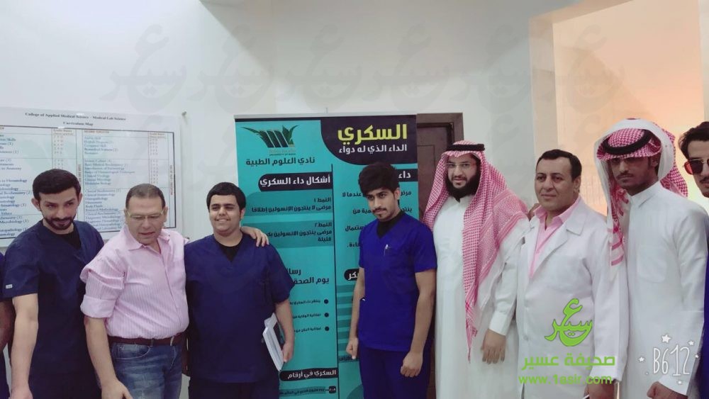 أقامت وحدة شؤون الطلاب بكلية العلوم الطبية التطبيقية بجامعة بيشة بمقر الكلية اليوم الأحد ١ ربيع الأول ١٤٣٩ معرضا توعويا بمناسبة اليوم العالمي للسكري.
