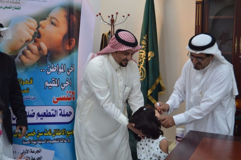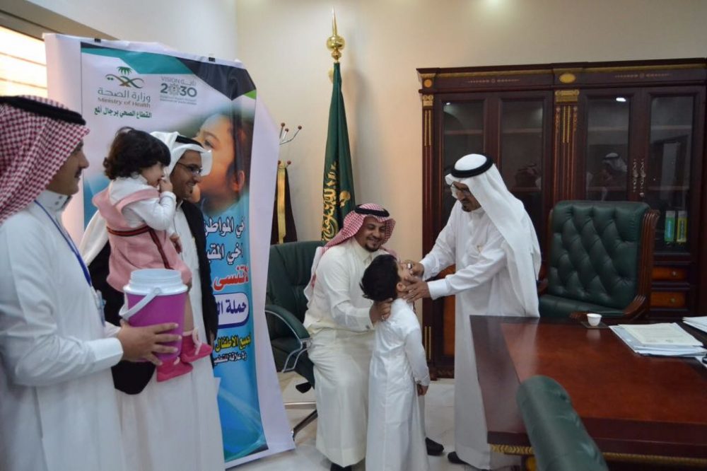 دشن محافظ رجال ألمع الاستاذ صالح بن سعد ال فردان انطلاق فعاليات حملة التطعيم ضد شلل الأطفال بمراكز الرعاية الصحية بالمحافظة وذلك بمقر المحافظة في رجال المع .