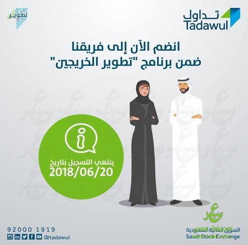 أعلنت شركة السوق المالية السعودية «تداول» عن فتح باب التسجيل للرجال والنساء في برنامج تطوير الخريجين (GDP)، وهو برنامج جديد مصمم للخريجين السعوديين الذين يعتزمون بدء مهنتهم وبناء خبرتهم في السوق المالية السعودية، ومدته (سنة واحدة) بدوام كامل في (9) مسارات تدريبية على النحو التالي: