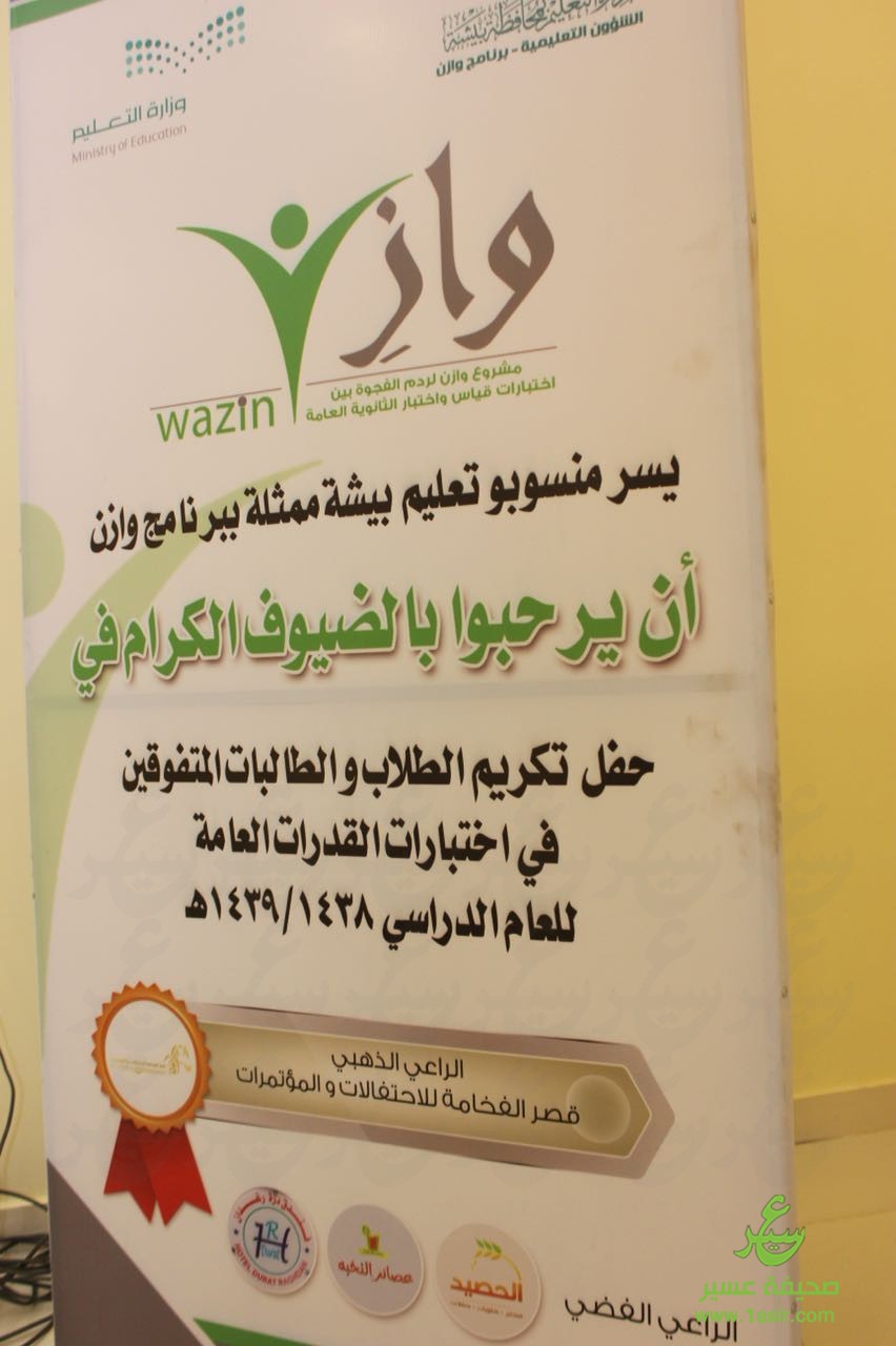 أقيم يوم الخميس ١٤٣٩/٨/١٧هـ بقاعة الفخامة في تعليم بيشة حفل تتويج متميزي ومتميزات “برنامج وازِن” الذي أطلقته إدارة تعليم بيشة على مدى عامين متتاليين والذي يهدف إلى “ردم الفجوة بين اختبارات الثانوية العامة واختبارات قياس” ، وذلك برعاية مدير التعليم ومساعدية للشؤون التعليمية بنين ، بنات ، والشؤون المدرسية وبحضور عددٍ من القيادات التربوية ورئيسات الأقسام والمشرفات التربويات وقائدات المدارس ، ومن التعليم العالي وكيلة الآداب بجامعة بيشة أ.مناء الغامدي ورئيسة قسم العلاقات العامة أ. سراء آل مفلح .