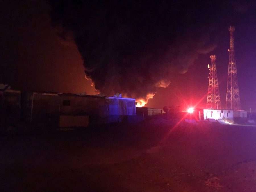 دون وقوع أي إصابات تذكر حريق هائل يلتهم بركسات شركة صيانة طرق بللحمر