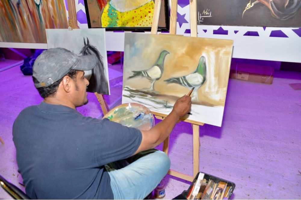 فنان تشكيلي مبدع صال وجال بريشته الجميلة ولوحاته التشكيلة المتميزة في جادة الفن بمهرجان صفري بيشة ٢٠١٨ ، تزاحم الجمهور الزائر للمهرجان خلف هذا الفنان التشكيلي لإلتقاط العديد من الصور التي يقدمها هذا المبدع ، هذا الفنان ليس جديد على الفن التشكيلي أو على مهرجانات بيشة ، بل له بصماته المتميزة في العديد من الاحتفالات والفعاليات ببيشة .