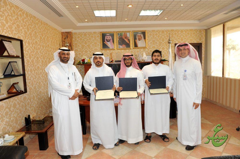 وهنأ عميد الكلية المتدرب سليمان ابراهيم سليمان الزعاقي و المتدرب محمد عبدالله عبدالرحمن الشايع والمتدرب مهند يوسف عبدالله الرسيني والمتدرب عبدالرحمن مطلق جمال العنزي على تفوقهم العلمي وتحقيقهم المراكز المتقدمة خلال فترة تدريبهم بالكلية منوها باهتمام وحرص المؤسسة بشكل عام والكلية بشكل خاص بالمتدربين المتميزين من خلال دعمهم بالجوائز والحوافز التي تشجعهم على بذل المزيد من التفوق والإبداع.