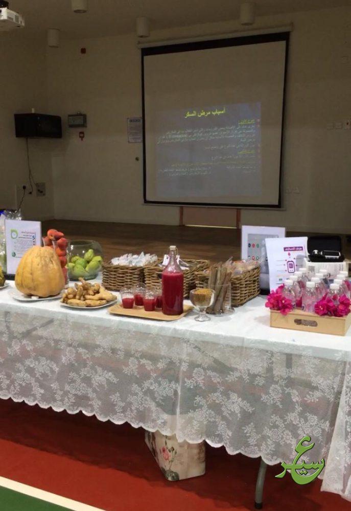 أقامت الكلية التطبيقية الصحية ببيشة ونادي اللياقة بنادي الحي بالثانوية الرابعة ملتقاً لمرض السكري بعنوان (السكر حلو.. بس السكري مُر!) وذلك يوم الأربعاء الموافق ١٤٤٠/٣/٢٠هـ. وقد تناول الملتقى جوانب عدة تتعلق بمرض السكري من توعية بالمرض وكيفية تجنب الإصابة به أو التعامل معه، كما تم التطرق للطرق التقليدية لعلاجه قديمًا وحديثًا، وتناول تاريخ المرض وإختراع الأنسولين. وقد قدمت د/صفاء فيلمًا تثقيفيًا لكيفية ضرب إبرة الأنسولين، وآخر عن الإهتمام بالغذاء المتوازن تم فيه الحث على مزاولة الرياضة لما لها من عظيم الفائدة لمرضى السكري. بالإضافة لذلك، تم عمل فحص لقياس مستوى السكر لدى الحضور، وأخيرًا تم تقديم توزيعات ملائمة للتوعية بهذا المرض.