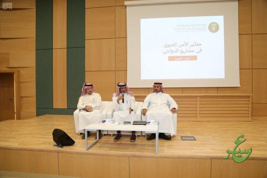 من جانبه استعرض مدير عام الصحة والرقابة البيطرية في الوزارة الدكتور علي الدويرج، أدوات التقييم الجديدة لمعايير الأمن الحيوي في مشاريع الدواجن العاملة في المملكة، موضحاً أن التقييم يهدف إلى تعزيز جودة وسلامة الإجراءات الوقائية التي يقوم بها مشروع الدواجن، للحد من دخول المخاطر الحيوية والسيطرة عليها حال حدوثها، وضمان سلامة المنتج النهائي من تلك المشاريع ، والإجراءات المترتبة على عدم التزام المشاريع بتلك المعايير، بالإضافة إلى استعراض عام للمخالفات والعقوبات لمشاريع الثروة الحيوانية الصادر وفقاً لنظام الثروة الحيوانية الصادر بموجب المرسوم الملكي بتاريخ 10 ربيع الأول 1424هـ.