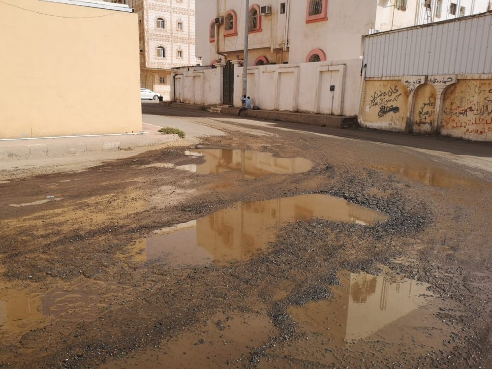 3- وجود مياه صادرة من الصرف الصحي التابع للمنازل وينتج عنها اضرار للجيران وتراكم المياه بشكل دائم وتوثر على إتلاف الاسفلت.