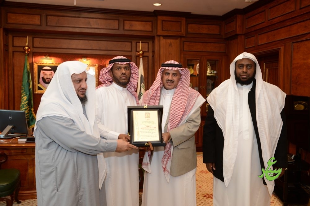 وقد شكر معالي مدير الجامعة الكلية على اهتمامها بطلابها وحرصها على تحقيقهم مراكز متقدمة في مختلف المسابقات كما شكر الفائزين ودعا لهما بالمزيد من التوفيق، ثم سلم معاليه درعا تذكاريا للفائزين في المسابقة تسلم الدرع الطالب حاتم آل رايزة وتسلم الآخر نيابة عن الطالبة والدها علي بن عبدالله الصيعري.