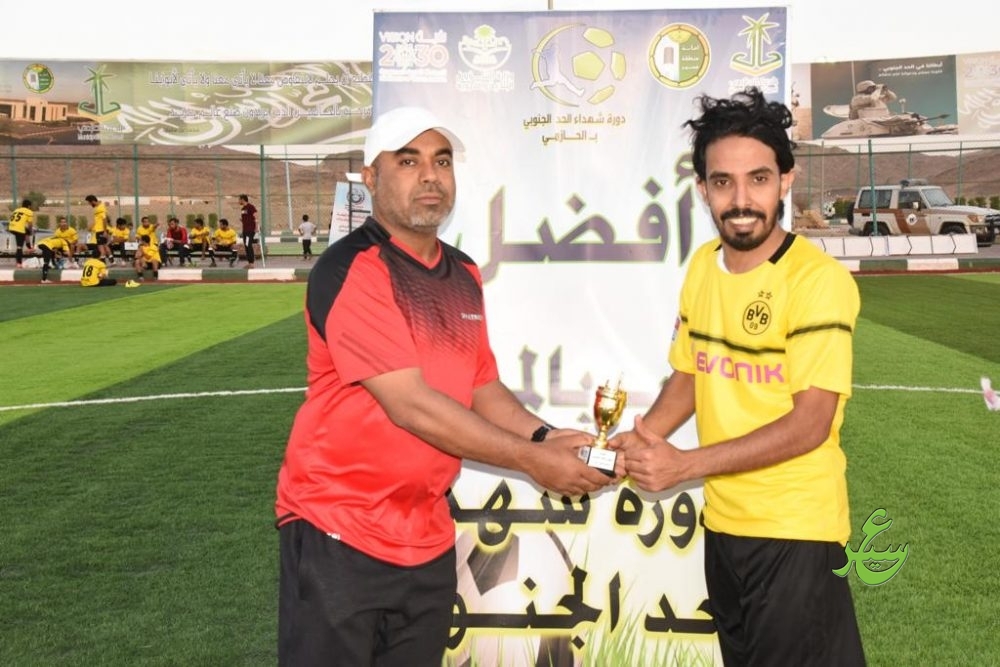 ضمن بطولة شهداء الحد الجنوبي التي تنظمها بلدية الحازمي ببيشة ، وبرعاية صحيفة عسير الإلكترونية ، ألتقى عصر أمس الاربعاء الموافق ١٤٤٠/٧/١٣هـ فريقي “العالمي ” و”الحيفة ” في المباراة الأولى وانتهت المباراة بفوز فريق العالمي بأربعة أهداف دون مقابل ، أما في المباراة الثانية ألتقى فريقي “الجزيرة ” ” وسد الملك فهد ” وانتهت بنتيجة ٣/١ لصالح فريق الجزيرة ، وحصل على جائزة افضل لاعب في المباراة الأولى اللاعب عبدالله مفلح من فريق العالمي ، وحصل على جائزة افضل لاعب في المباراة الثانية اللاعب علي دلبوح فريق الجزيرة ، وقد سلم الجائزة الأولى الاستاذ/عبدالله صمهود الغامدي محاضر الاتحاد السعودي وعضو لجنة أكتشاف المواهب في الاتحاد السعودي ، فيما سلم الجائزة الثانية الاستاذ/عبدالله ناعسه الشهراني ، نتمنى التوفيق لجميع الفرق المشاركة في هذه البطولة .