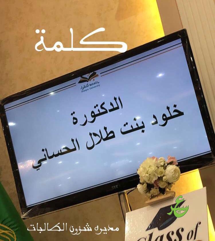 ثم كلمة معالي مدير الجامعة الأستاذ الدكتور/عوض بن خزيم ال سرور الأسمري، وكان لكلمة معاليه وقع كبير في نفوس الطالبات ،تلا ذلك برنامج الحفل فقرة استعراضية من الابتدائية الاولى بالدوادمي،وبعد ذلك قدمت وكيلة الجامعة لشؤون الطالبات د. خلود بنت طلال الحساني كلمة والتي هنئت فيها الخريجات ووليات أمرهن على هذا النجاح ،وحثت في كلمتها الخريجات على مواصلة مسيرة العلم والتعلم، وبعد ذالك كلمة سعادة وكيلات كليات الدوادمي د.هيا بنت ابراهيم الظبيب والتي باركت لجميع الخريجات وحثتهن على المواطنة الصالحة ،والبذل والعطاء ،وحملتهن المسؤولية لدفع عجلة التنمية والتقدم في هذا الوطن المعطاء ، ثم اختتمت الكلمة بشكر لمنسوبات الجامعة، ثم بعد ذلك قدمت الأستاذة ليلى الدلبحي كلمة الخريجات ثم قصيدة عن الوطن للطالبة سماهر منيف، وبعد ذلك ابتدأت مسيرة الخريجات تقدمتهن وكيلات الكلية تخللها تكريم وكيلات الكليات لهن.