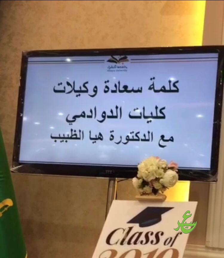 احتفلت جامعة شقراء بمحافظة الدوادمي بتخريج الدفعة العاشرة من طالبات الجامعة وذلك يوم الاربعاء الموافق 1440/8/5هـ .بحضور ضيوف من التعليم العام وكلية التقنيه وسيدات الاعمال بالمحافظة ووكيلة الدراسات العليا بالجامعة د.نوف سعيد العصيمي حيث تم تخريج اول دفعة بتخصص دكتور صيدلي وعددهن50خريجة ،ثم تخريج1150خريجة من مجمع كليات الدوادمي.
