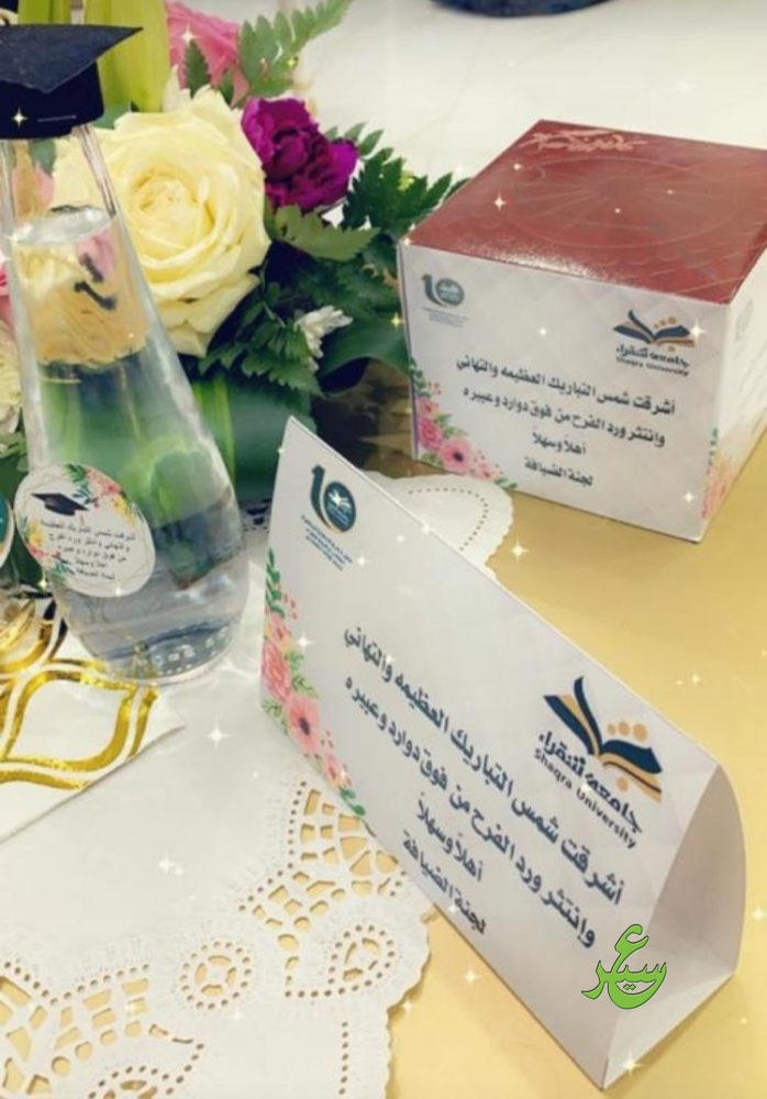 واختتم الحفل بالتهنئة والتبريكات للخريجات وشكر لمعالي مدير الجامعة ولوكيلة الجامعة ووكلائها واللجان المنظمة .