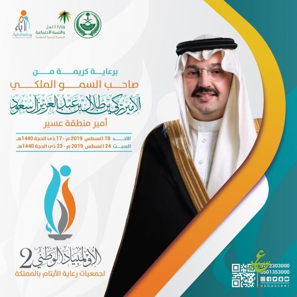 وجَّه صاحب السمو الملكي الأمير تركي بن طلال بن عبدالعزيز، أمير منطقة عسير بإقامة الأولمبياد الوطني الثاني لجمعيات رعاية الأيتام بالمملكة تحت رعايته ضمن رزنامة الفعاليات السياحية لصيف هذا العام ١٤٤٠ هـ بتنظيم من جمعية آباء لرعاية الأيتام بمنطقة عسير، إيمانا من سموه الكريم بأهمية بناء قدرات الأيتام، و صقل مهاراتهم و اكتشاف مواهبهم.