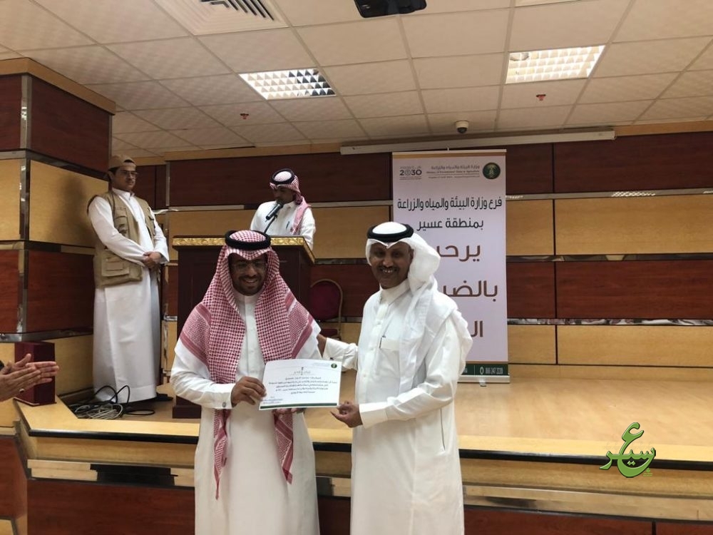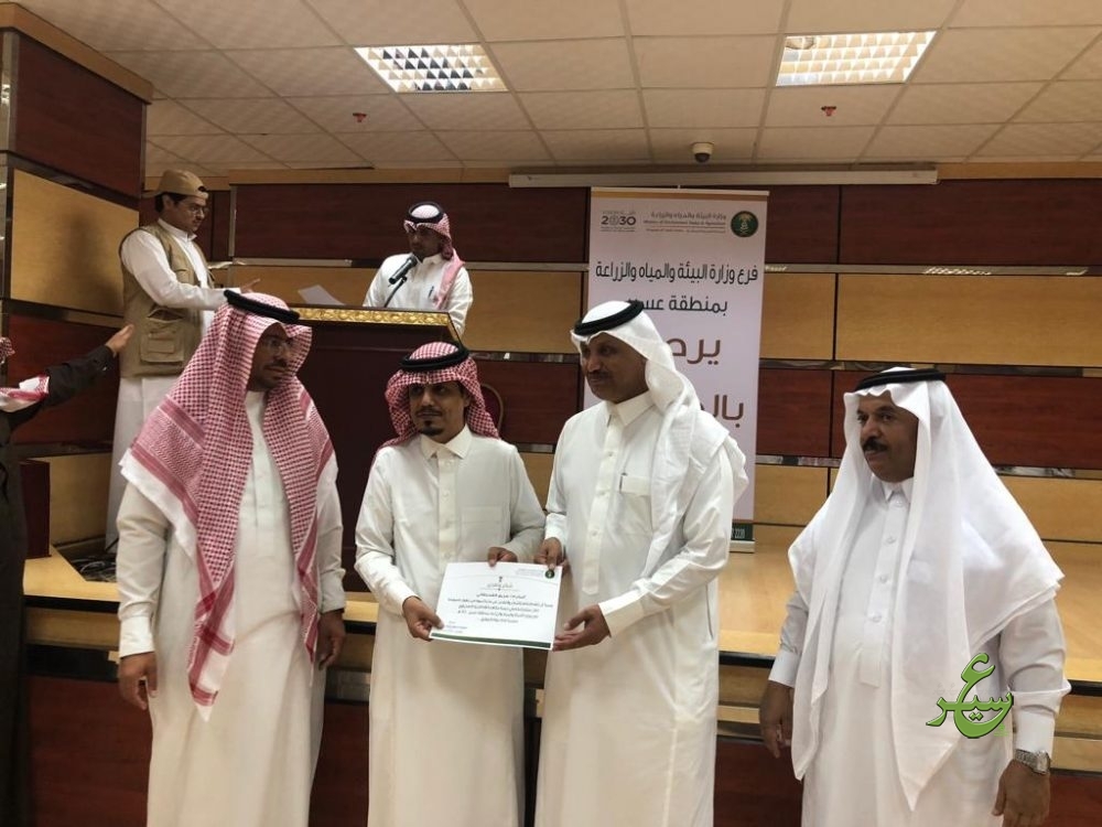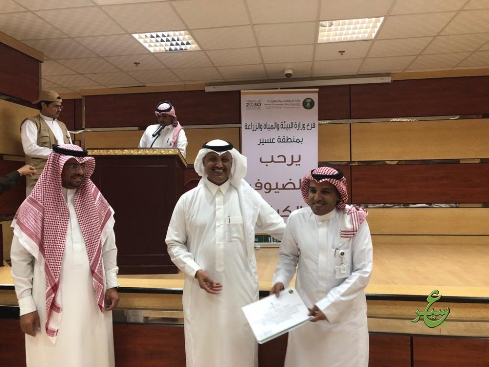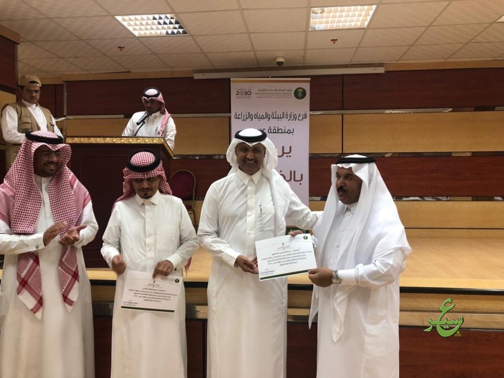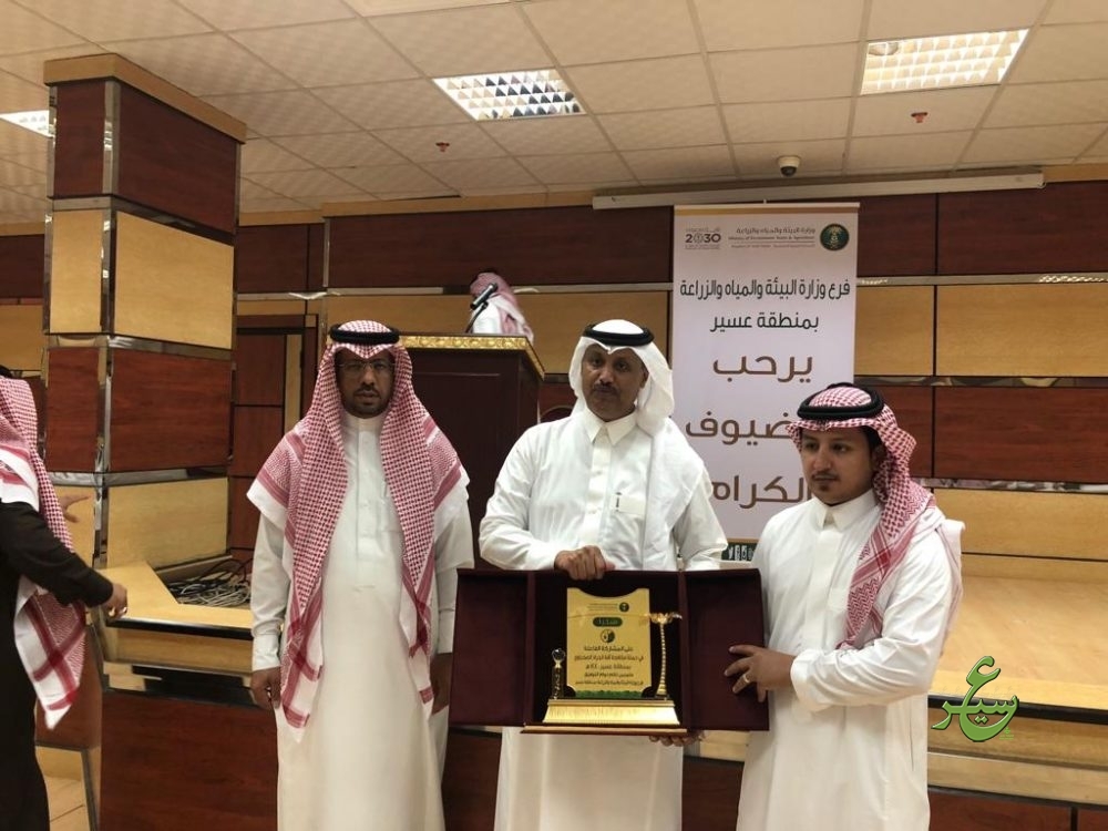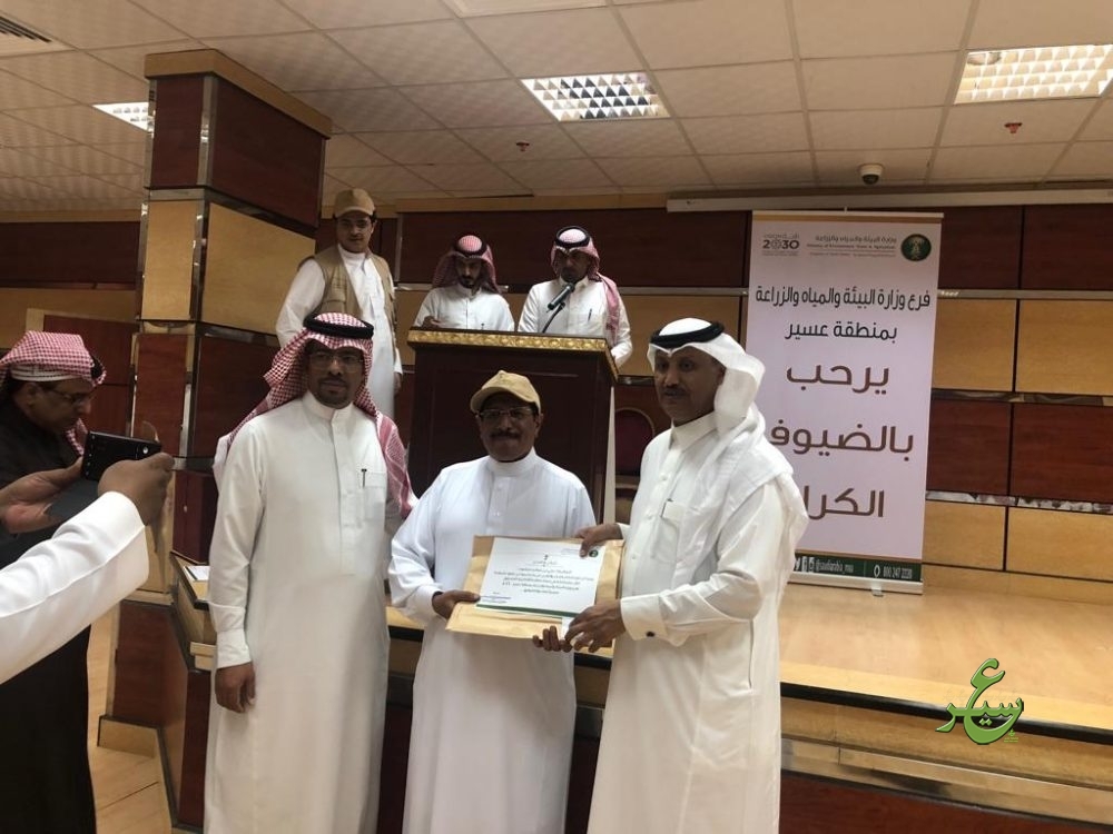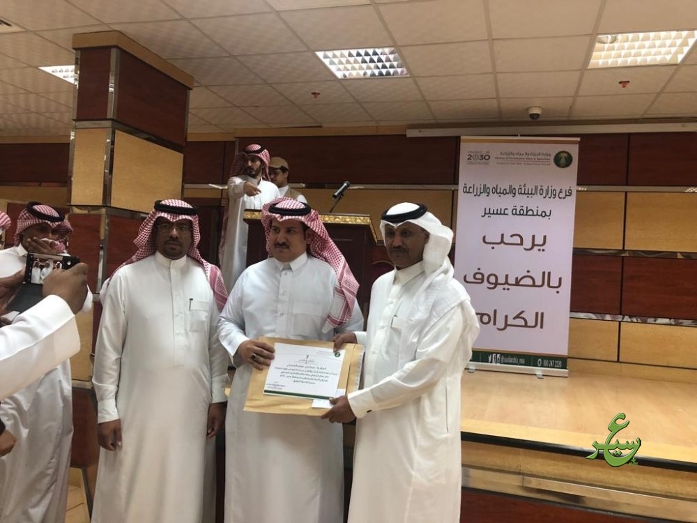 أقام فرع وزاره البئيه المياه والزراعه بعسير حفل تكريم للفرق المشاركه في حمله مكافحه الجراد الاولى والثانيه وذالك بقاعه المهندس فهد محمد الفرطيش بفرع الوزراه وبداء الحفل بأيات من الذكر الحكيم وكلمه لمدير فرع الوزراه المنهدس فيصل ال زياد والذي ذكر فيه الجهود التي بذلتها الفرق المكافحه في جميع القطاعات والعاملين في غرفه العمليات وعن زياره سمو امير منطقه عسير ومعالي نائب الوزير وفِي خلال كلمته تحدث للحضور عبر الاتصال الهاتفي وكيل الوزارة للزراعة