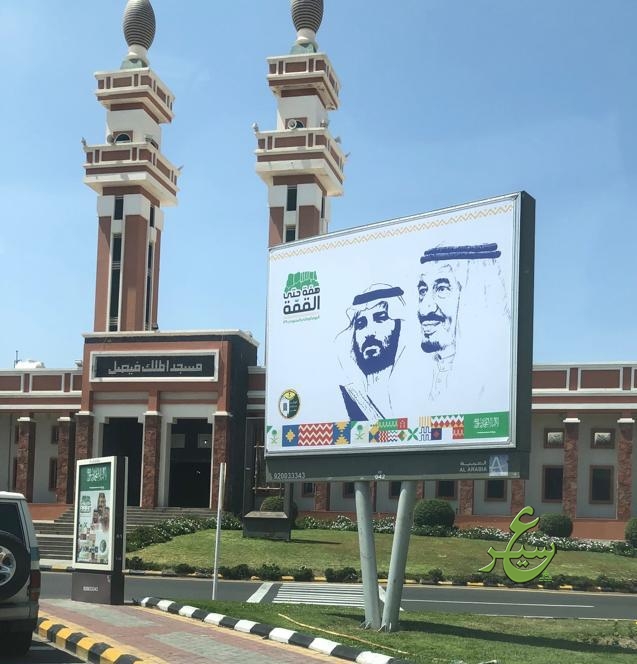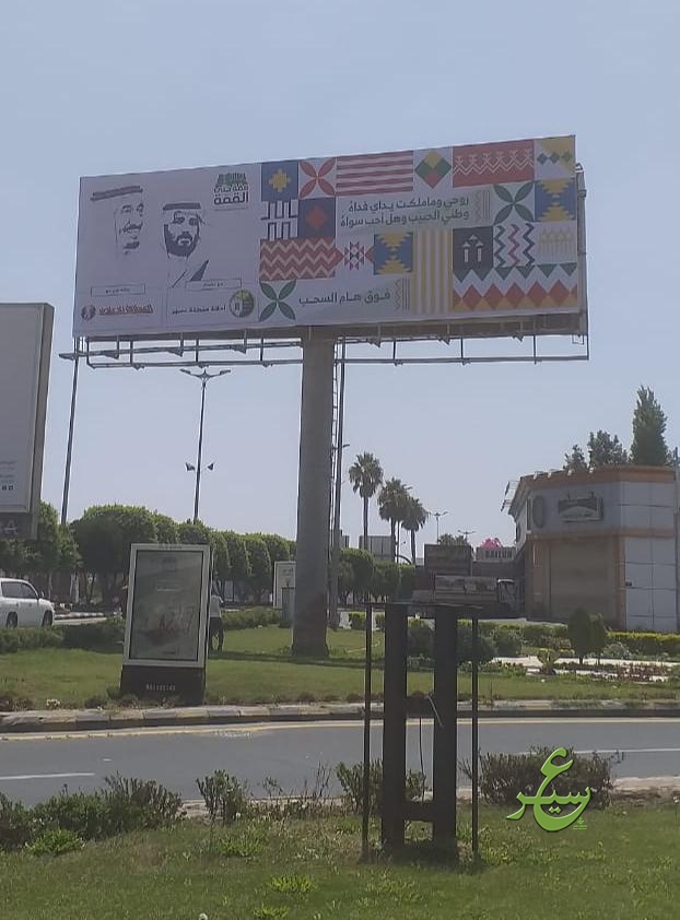 حيث توشحت شوارع مدينة أبها الرئيسية وميادينها بالأعلام الخضراء، كما تم تركيب اللوحات الوطنية على الطرقات.