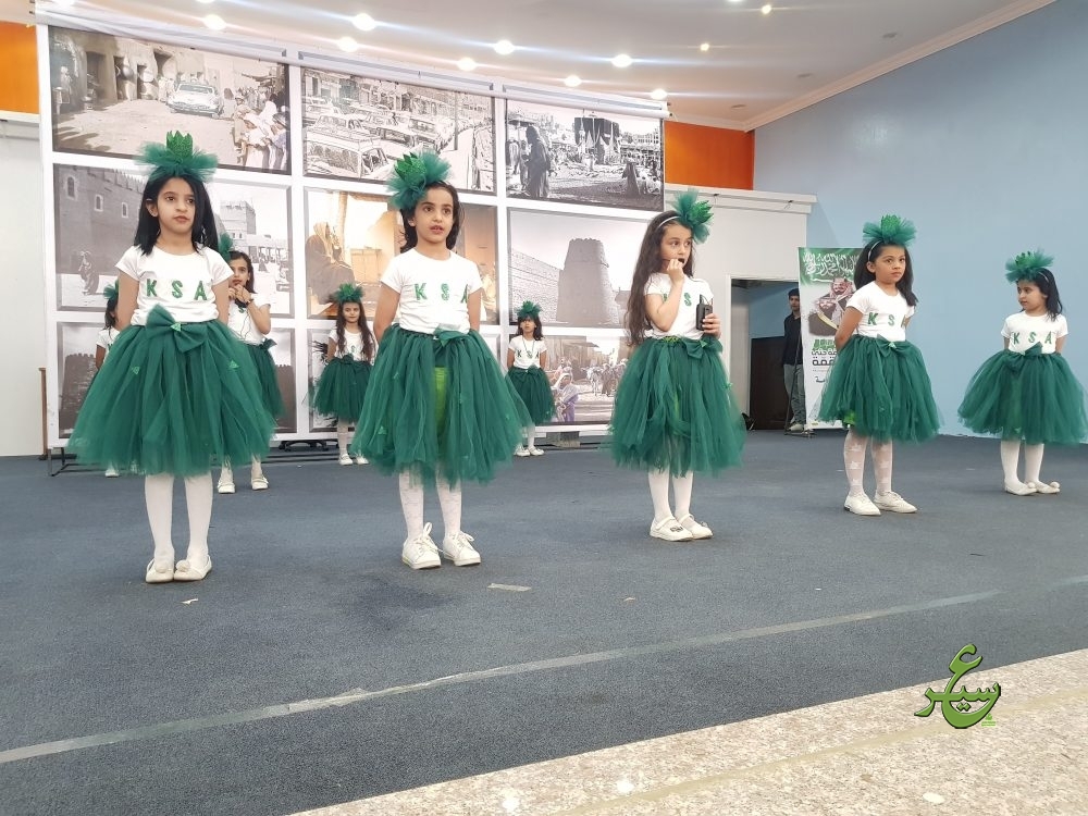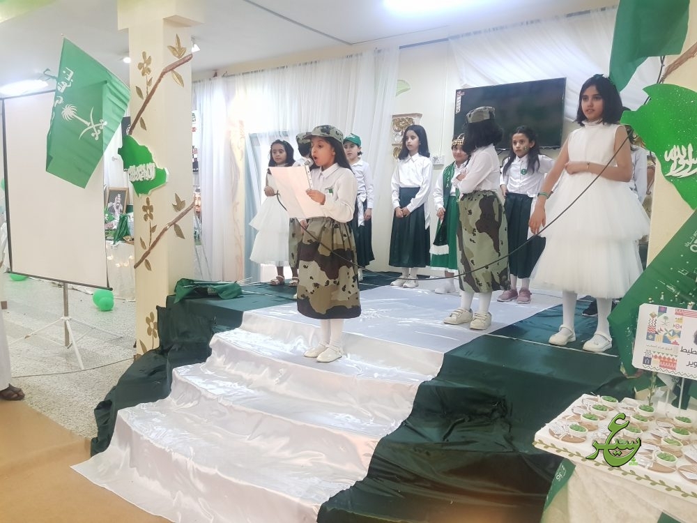ثم قدم عدد من طالبات الابتدائية الثانية نشيدا جماعيا عن اليوم الوطني ٨٩.