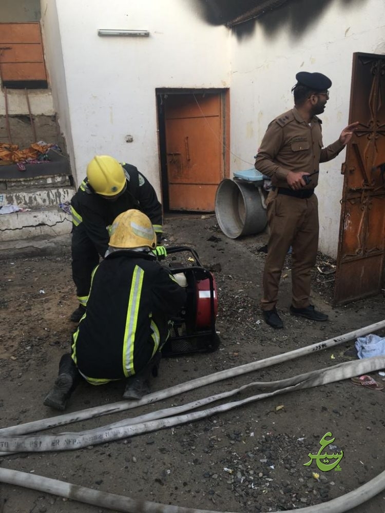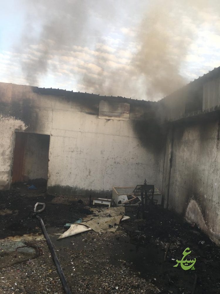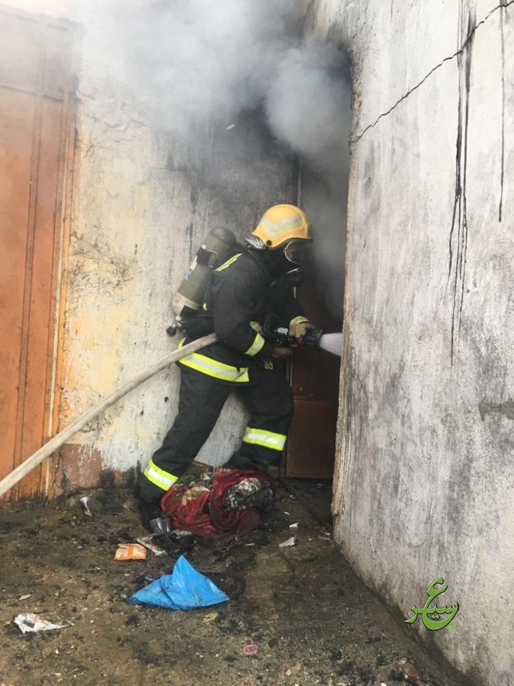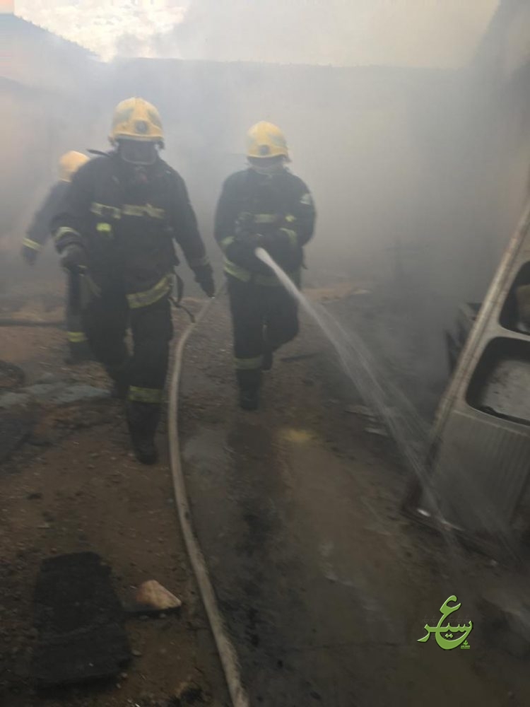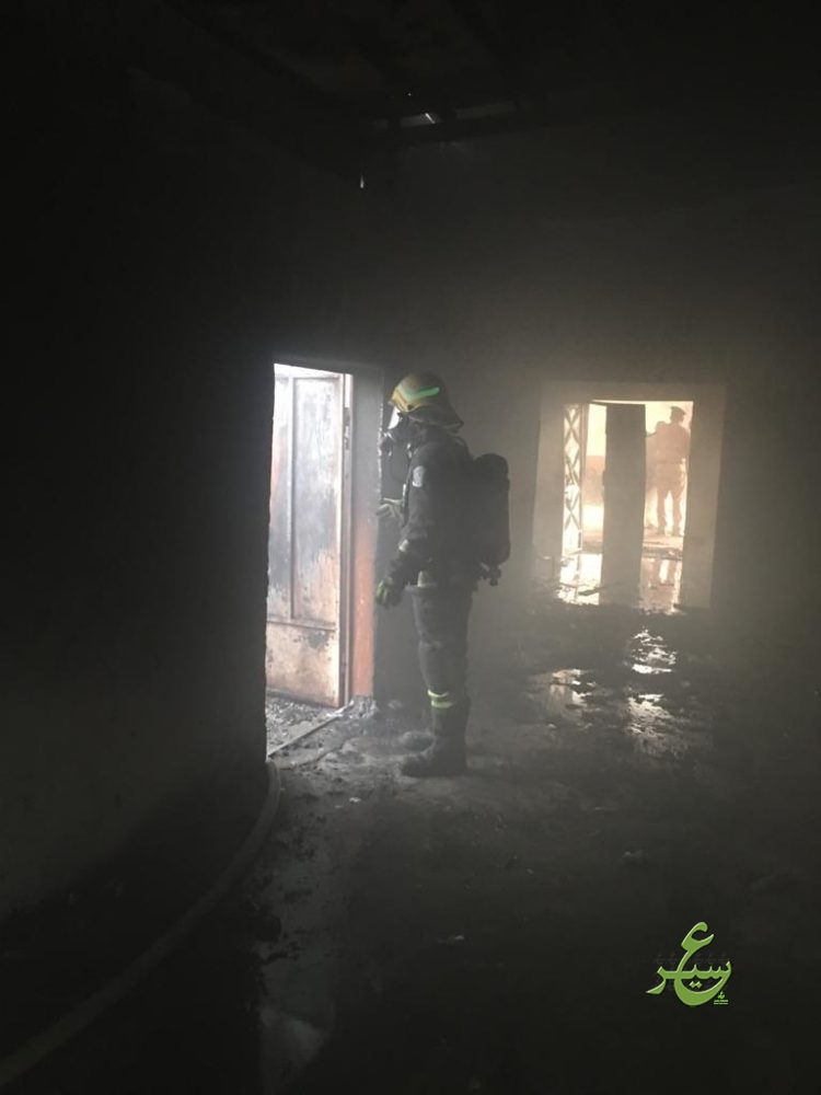 باشر الدفاع المدني ببيشة اليوم الأربعاء الموافق ١٤٤١/٠٧/٠٢هـ ، بلاغاً عن حريقاً إندلع في منزل شعبي بقرية الحرف به أشخاص محتجزين بداخله ، وعلى الفور تم تحريك الفرق اللازمة وبالوصول وجد بأن الحالة عبارة عن حريق بمنزل شعبي مكون من ٩ غرف إقتصر الحريق في ٦ غرف وقد عملت الفرق على إستخراج المحتجزين امرأة و ٥ أطفال من جنسية عربية وهم مصابين بحالات إختناق بسيطة ونقلهم للمستشفى عن طريق الهلال الأحمر وإخماد كامل الحريق والعمل على تهوية الموقع بواسطة المعدات الفنية اللازمة ، وبالبحث والمعاينة إتضح بأن سبب الحريق هو إلتماس كهربائي في مكيف صحراوي .