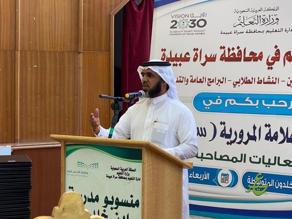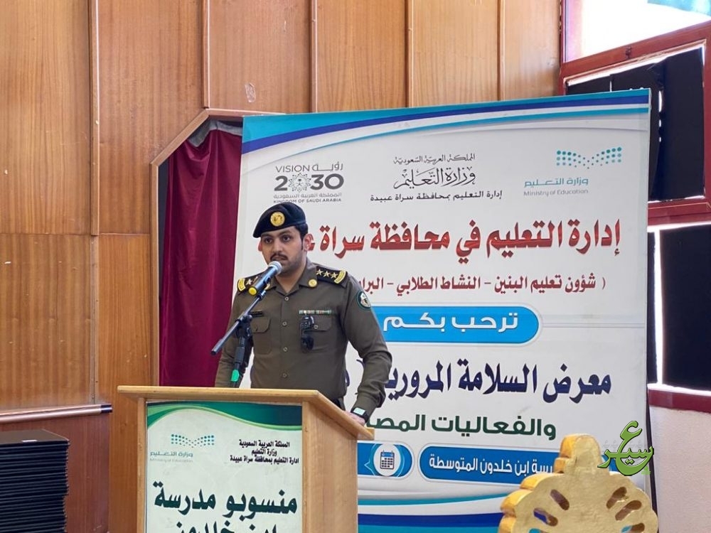 دشن محافظ سراة عبيدة أ.محمد بن سعيد بن جزوا الدوسري وبحضور مدير التعليم د.حسن العلكمي ومدير شعبة مرور المحافظة النقيب : خالد القحطاني ، فعاليات معرض السلامة المرورية الذي أقامته إدارة النشاط الطلابي بتعليم سراة عبيدة ( البرامج العامة والتدريب) بمساندة من شعبة مرور المحافظة تحت شعار “سلامتك” وذلك بمتوسطة ابن خلدون بحضور عدد من مديري الإدارات الحكوميةوالمسؤولين