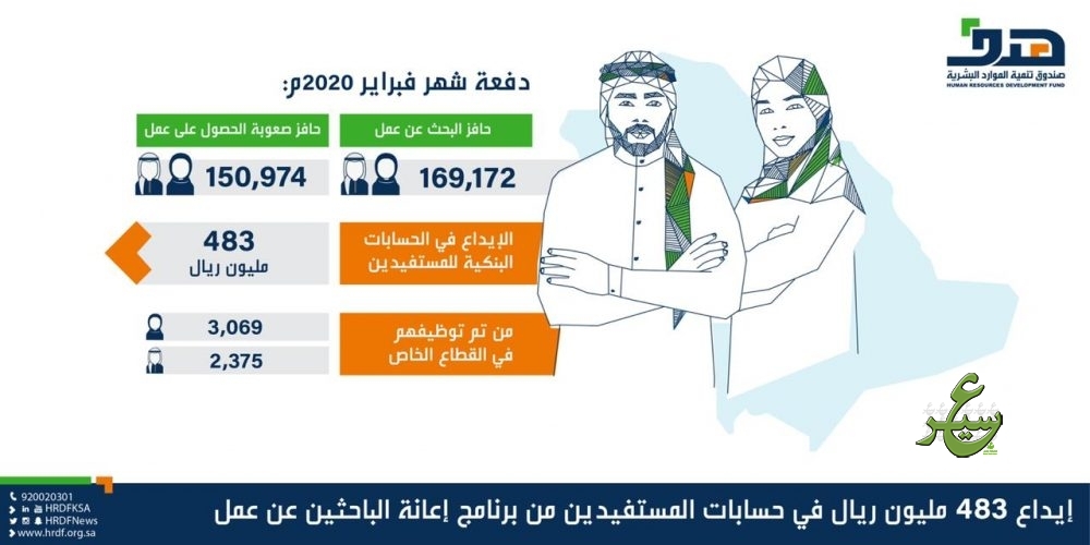أودع صندوق تنمية الموارد البشرية (هدف)، اليوم (الخميس)، أكثر من 483 ملايين ريال، في الحسابات البنكية لأكثر من 320 ألف مستفيد ومستفيدة من المسجلين في برنامجي حافز البحث عن عمل وحافز صعوبة الحصول على عمل، وذلك عن شهر فبراير 2020م.