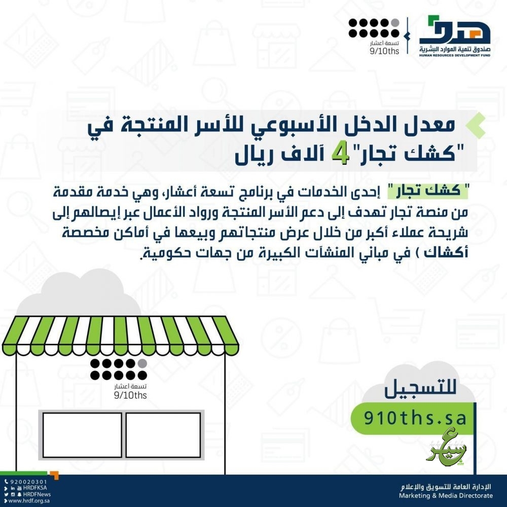 وتهدف منصة “كشك تجار” إلى دعم الأسر المنتجة ورواد الأعمال عبر إيصالهم إلى شريحة عملاء أكبر من خلال عرض منتجاتهم وبيعها في أماكن مخصصة (أكشاك) في مباني المنشآت الكبيرة من جهات حكومية أو منشآت القطاع الخاص.