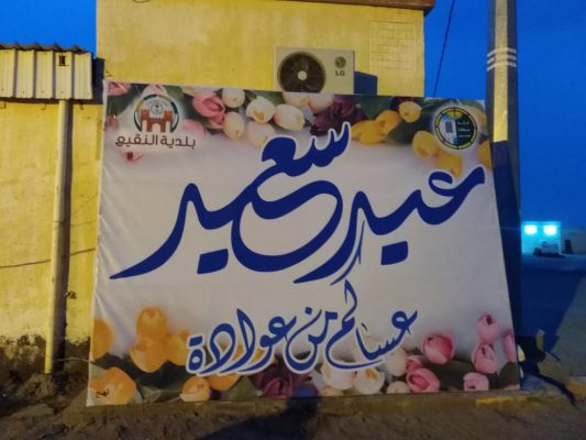 استعدت بلدية النقيع بتزيين شوارع مركز النقيع والقرى التابعة لها ،وكذلك ومركز الجنينة والقرى التابعه له ، وذلك بلوحات العيد وعبارات التهنئه احتفالاً بمناسبة عيد الأضحى المبارك لهذا العام ١٤٤١هـ .