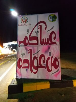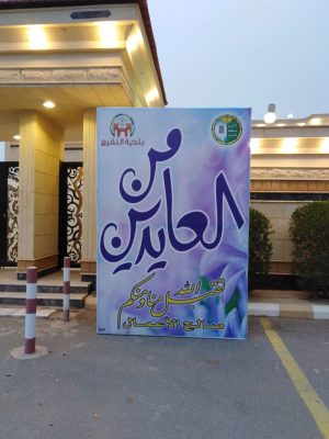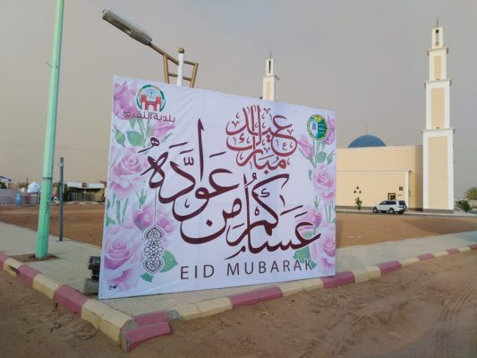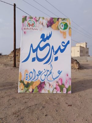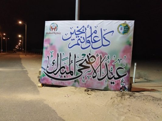 وقد قامت البلدية بتركيب عدداً كبير من اللوحات بهذه المناسبة السعيدة في الشوارع الرئيسية، كما قامت بتكثيف الرقابه وصيانة الحدائق وتجهيزها استقبالًا لعيد الأضحى المبارك .