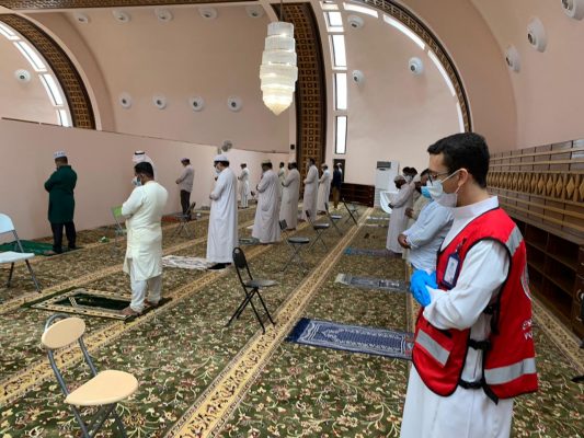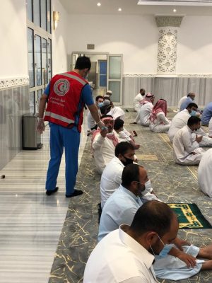 أقام فرع هيئة الهلال الأحمر السعودي بالمنطقة الشرقية وبالتعاون مع فرع وزارة الشؤون الإسلامية والدعوة والإرشاد بالمنطقة الشرقية هذا اليوم الجمعة الموافق ١٠ / ١٢ / ١٤٤١هـ عدد من نقاط الفرز والفحص الأولي بعدد (٢٦) جامع من جوامع المنطقة الشرقية وذلك لفرز المصلين في صلاة العيد وصلاة الجمعة لتحقيق التباعد الاجتماعي وحمايتهم من جائحة فايروس كورنا وذلك من خلال فرز المصلين قبل دخول الجامع والتأكد من درجات حرارتهم ولبس الكمامات وتعقيم الأيدي، وساهم عدد ( ١٣٠ ) متطوع من متطوعي فرع الهيئة بالمنطقة الشرقية مع موظفي إدارة التطوع في الهيئة في إقامة هذه النقاط بالجوامع الأكبر والتي تستوعب أعداد كثيرة من المصلين، حيث تمت هذه المبادرة في الدمام والخبر والظهران وأم الساهك والأحساء وحفر الباطن. وتأتي هذه المبادرة من دور هيئة الهلال الأحمر السعودي في تقديم الخدمات المجتمعية التطوعية من خلال فريق التطوع والمتطوعين التابعين لها وتحت مظلتها ومساهماتها مع مختلف الجهات ذات العلاقة في دعم مختلف النشاطات بالنقاط الإسعافية التطوعية ونقاط الفرز والفحص الأولي لمواجهة جائحة فايروس كورونا.