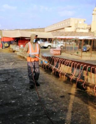 قامت أمانة منطقة عسير بحملةٍ للرش والتعقيم في سوق الخضار والفواكة والمواشي، إلى جانب المسلخ العام بأبها؛ من أجل سلامة وحماية مرتاديها وفق إرشادات وزارة الصحة وتعليمات وزارة الشؤون البلدية والقروية، بتكثيف أعمال النظافة والتعقيم واتخاذ التدابير الوقائية وخاصةً في أسواق النفع العام لكثرة مرتاديها، إلى جانب أهمية التوعية المستمرة.