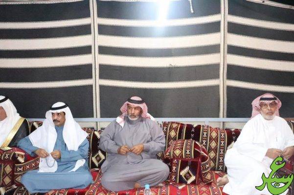 كان في الإستقبال نخبة من مشايخ وأعيان حرب والجميع محاطين بصور الجود والكرم