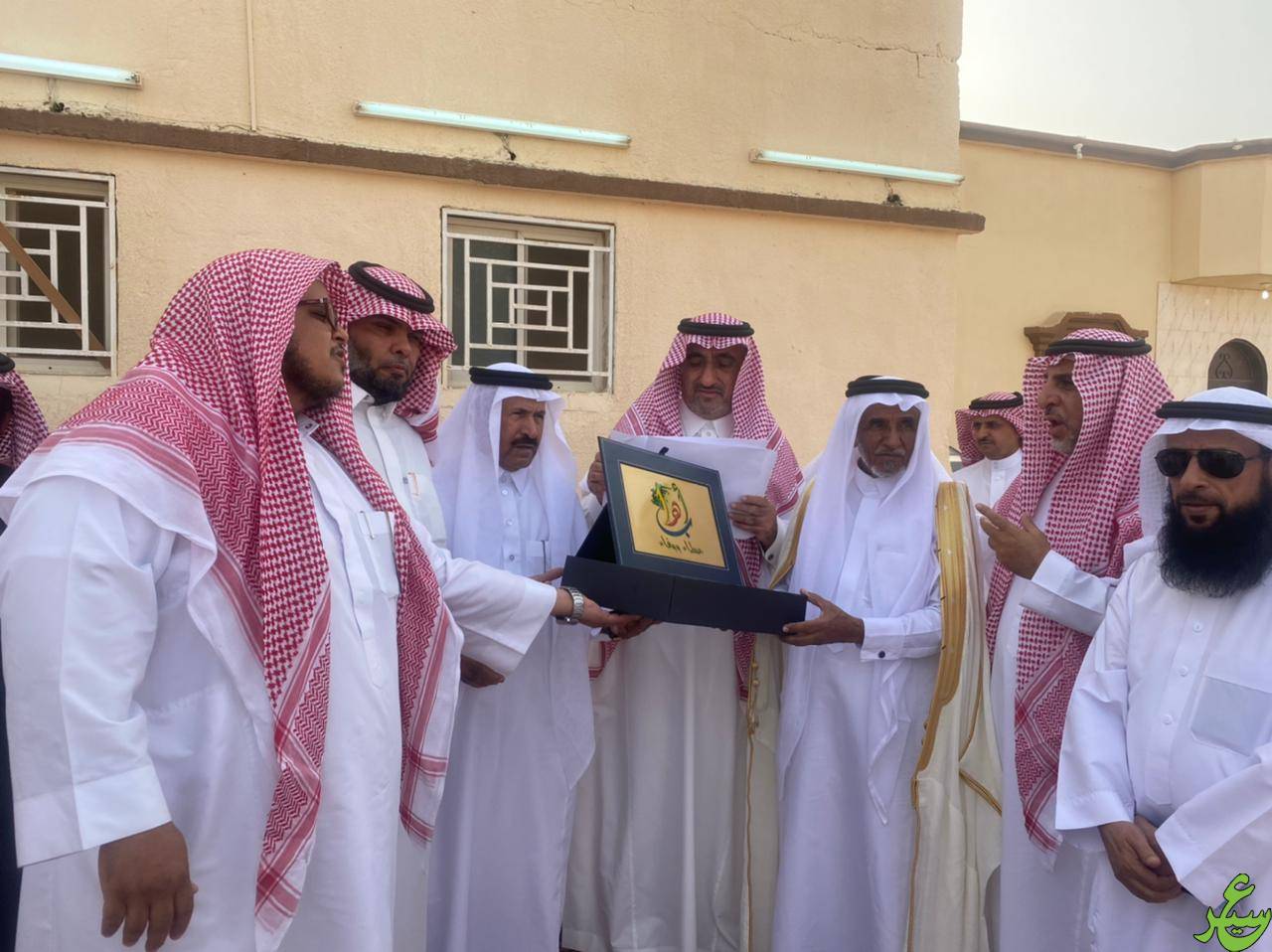 ثم قدم الدكتور عبد الله ابو عشي درع المجموعه (بإسم رمز عسير لأبناء الشيخة / نوره آل عسيلة الشهراني ومعه كفالة ثلاثة ايتام من جمعية اباء ووقف لعدد 100 وحده وقفيه للعناية بمساجد الطرق.