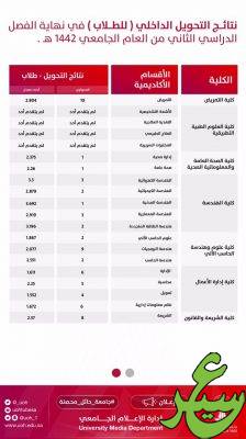 أعلنت عمادة القبول والتسجيل بجامعة حائل نتائج التحويل الداخلي للطلاب والطالبات بين مختلف التخصصات بالجامعة في الفصل الدراسي الثاني من العام الجامعي 1442هـ ، وذلك بعد أن تمت عمليات الفرز التنافسية إلكترونيًّا.