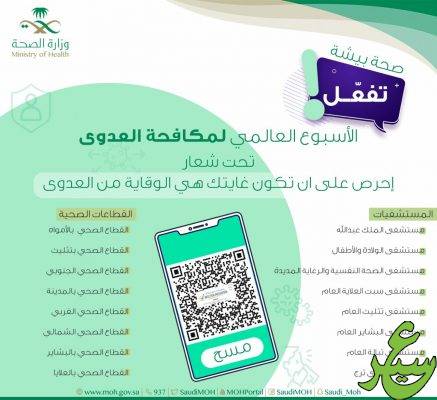 فعلت صحة بيشة ممثلة بأقسام مكافحة العدوى، وبمشاركة إدارة التوعية الصحية .بمستشفياتها والقطاعات الصحية والمراكز المتخصصة التابعة لها فعاليات الاسبوع العالمي لمكافحة العدوى 2021 تحت شعار *إحرص على ان تكون غايتك هي الوقاية من العدوى*