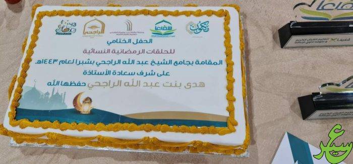 وكرمت الأستاذة/ هدى بنت عبدالله الراجحي رئيسة مدرسة عائشة الراجحي لتعليم القرآن الكريم بالشراكة مع جمعية شفيعاً لتعليم القرآن الكريم وعلومه لذوي الإعاقة اليوم الأربعاء ١٤٤٣/٩/١٩هـ الحافظات المشاركات في الحلقات النسائية الرمضانية لذوي الإعاقة المنتظمات في الدورة الرمضانية بجامع الشيخ عبدالله الراجحي بشبرا، وتم توزيع الهدايا عليهن، وكانت المكرمة حنين منير من ذوي الإعاقة الحركية قد حفظت القرآن الكريم كاملاً وختمته في رمضان ، كما ذكرت الأستاذة ماجدة مرزوق عضو جمعية شفيعاً أنه كان هناك عدة حلقات للصم وضعاف السمع وللمكفوفات والاعاقة الحركية ومتلازمة داون طوال شهر رمضان المبارك عن بعد عبر منصة يسرنا الخاصة بذوي الاعاقة ويشرف عليهن نخبة من المختصات.