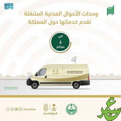 تقدم الوحدات المتنقلة للأحوال المدنية خدماتها للرجال والنساء في (6) مواقع في منطقتي مكة المكرمة وحائل, وذلك ضمن مبادرة ” نأتي إليك” التي تنفذها وكالة وزارة الداخلية للأحوال المدنية للجهات الحكومية والخاصة، ومبادرة “موجودين” الموجهة لخدمة المحافظات والمراكز والقرى البعيدة عن مكاتب الأحوال المدنية.
