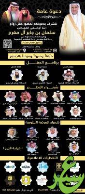 في ليلة وفاء وعرفان احتفل المهندس سلمان بن جابر ال مقرح بزواجة في قصر الشيوخ بأبها بحضور عددا من المشايخ ورجال الأعمال والإعلام والأصدقاء والزملاء والاقارب وجمع كبير قارب 600 شخص من جميع القبائل .