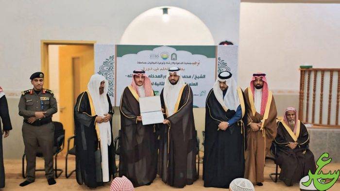 كرم محافظ صامطة الدكتور خفير العمري فرع الإفتاء بمنطقة جازان وذلك بحضور عضو مجلس الشورى الدكتور عاصم محمد مدخلي وفضيلة رئيس جمعية الدعوة بصامطة الشيخ محمد زيد مدخلي ومدير ادارة البحوث العلمية والإفتاء بفرع الرئاسة الشيخ عبدالرحمن محمد مدخلي وجمع من أصحاب الفضيلة وطلاب العلم .