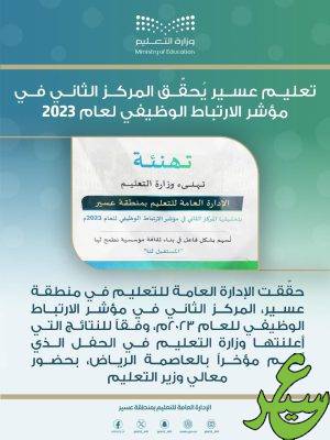 تعليم عسير يُحقّق المركز الثاني في مؤشر الارتباط الوظيفي لعام 2023