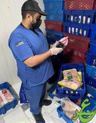 ضبطت امانة الاحساء مخالفة ” مستودع دواجن ” ،حيث رصد مراقبي “إدارة الرقابة والامتثال” عدداً من المُخالفات للاشتراطات الصحية والمهنية في الموقع ، فيماتم مصادرة واتلاف نحو 5 أطنان من الدواجن غير الصالحة للاستهلاك الآدمي ” فاسدة” ، وسحب 72 كيلوغراماً ” عينات ” لإجراءات الفحص المخبري ، مع تطبيق الجزاءات بحق المخالفين وفق اللوائح والأنظمة البلدية واغلاق الموقع .