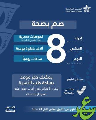 كما تستهدف حملة الصحة القابضة زيادة الوعي حول سبل تحسين سلوك الفرد للحد من تأثير الأمراض المزمنة على حياة الفرد خلال شهر رمضان المبارك، وإجراء فحص الدم لاكتشاف الإصابة بالأمراض مبكرًا وتحديد برنامج العلاج المناسب من خلال الخدمات المتنوعة التي تقدمها مراكز الرعاية الأولية، علاوة على حث أفراد المجتمع على مُمارسة رياضة المشي بما لا يقل عن 8 آلاف خطوة ومتابعة الأداء اليومي عبر تطبيق “صحتي” والمشاركة في تحدي رمضان عبر الرابط: www.health.sa،بالإضافة إلى النوم لساعات كافية لا تقل عن 8 ساعات.