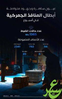 كما شهدت المنافذ الجمركية إحباط 2341 من التبغ ومشتقاته، إلى جانب 45 صنفًا لمبالغ مالية، و6 أصناف لأسلحة ومستلزماتها.