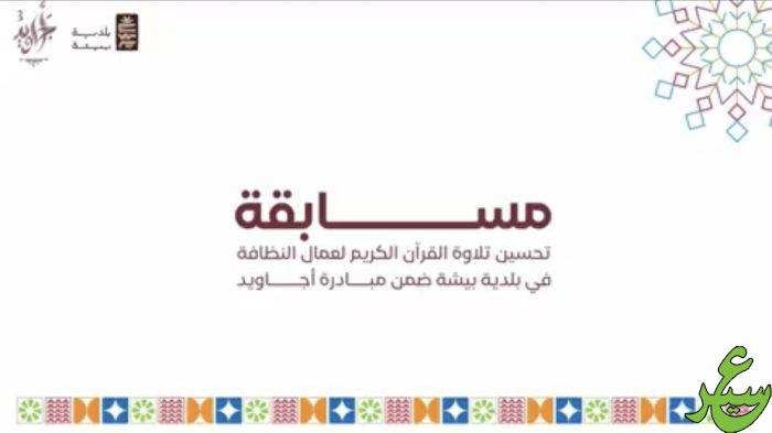 ضمن مبادرة أجاويد3 ، وجه رئيس بلدية بيشة المهندس محمد بن فلاح القحطاني ، بانطلاق مسابقة حفظ القرآن الكريم وتحسين التلاوة لعمال النظافة مع إقامة العديد من البرامج والفعاليات المخصصة لهؤلاء العمال ، واكتشف الحضور من خلال هذه المسابقة أن ( روبل مياه ) عامل نظافة ببلدية بيشة حافظاً للقرآن كاملاً ، وقد لا قت هذه المبادرة اشادة كبيرة من المجتمع في محافظة بيشة ، شاكرين الجهود التي تقدمها بلدية بيشة باستمرار .