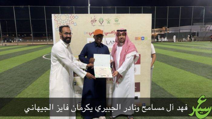 وقد قامت اللجنة المنظمة لبطولة جمعية التنمية الأهلية بشمال بيشة ممثلة برئيس جمعية التنمية الأهلية بشمال بيشة الأستاذ فهد بن محمد آل مسامح ، والمشرف العام على البطولة الأستاذ نادر عبدالله الجبيري ، بتكريم الأستاذ فايز الجيهاني ، بشهادة شكر وتقدير ، وذلك نظير هذا العمل البطولي الذي قام به مشكوراً.