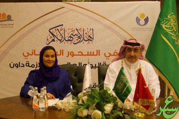 نظمت جمعية أصدقاء ذوي الإعاقة سحورا رمضانيا بمناسبة اليوم العالمي لمتلازمة داون ، وذلك بتشريف أصحاب السمو الملكي الأمراء ورجال الأعمال، وأولياء الأمور ،وذوي الإعاقة ،والإعلاميين ، والجهات ذات العلاقة بذوي الإعاقة