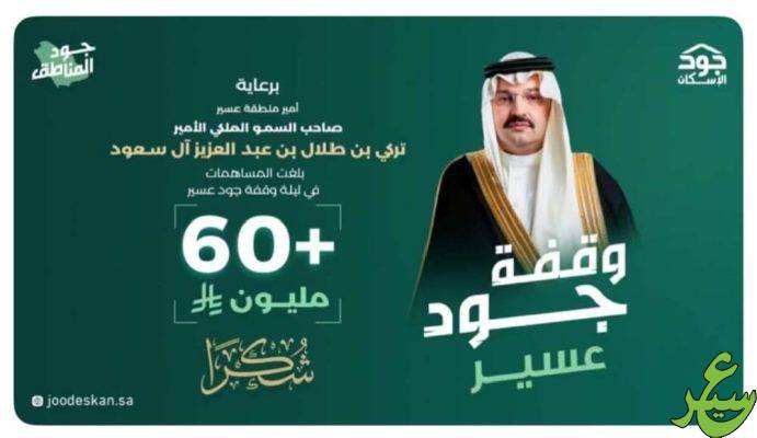 وكان شاهدها ليلة امس الاحد في مبادرة (جود المناطق) لنثبت للعالم ان (عسير الاجودية) جادت ب٦٠ مليون ريال والتنسيق قبل 48ساعة فقط من انطلاق #وقفة_جود_عسير ضمن حملة #جود_المناطق