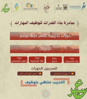 لجنة تراحم لرعاية السجناء والمفرج عنهم وأسرهم في عسير تتبني ” مبادرة بناء القدرات لتوظيف المهارات ” ضمن مبادرة أجاويد 3 من فكرة وإعداد ورعاية / فاطمة ناصر القحطاني ، حيث شارك في هذه المبادرات عدد من المتطوعين والشركاء الداعمين لهذه المبادرة ، وتساهم هذه المبادرة في تقديم العديد من الدورات التدريبية المنتهية بالتوظيف لأسر النزلاء في عسير وتم تنفيذ المبادرة في مدينة أبها ، تبدأ في التأسيس المعرفي وبناء الشخصية وكسب الخبرات المتنوعة والتنمية البشرية وتوظيفهم ، واشتملت ايضاً على عدد من الأهداف :