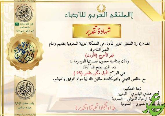 (المركز الاول مكرر) الشاعرة الأستاذة /قمر الأعرج -دولة الاردنية الهاشمية الشقيقة عنوان القصيدة