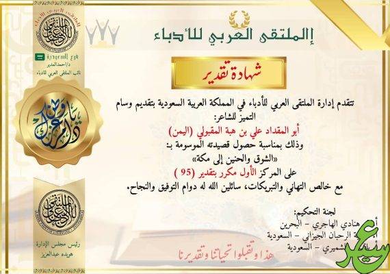 – ١- (المركز الاول مكرر ) الشاعر: المقداد بن هبة المقبولي -دولة اليمن الشقيق