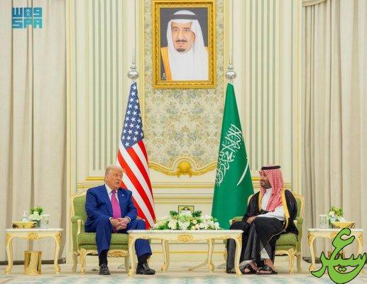 رأس صاحب السمو الملكي الأمير محمد بن سلمان بن عبدالعزيز آل سعود ولي العهد رئيس مجلس الوزراء، وفخامة الرئيس دونالد جي ترمب رئيس الولايات المتحدة الأمريكية، أعمال القمة السعودية الأمريكية في الديوان الملكي بقصر اليمامة اليوم.